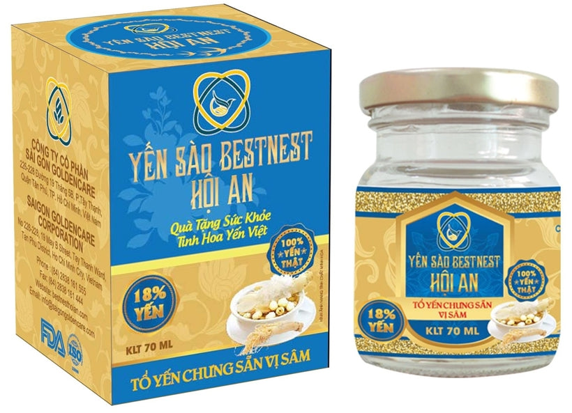 Tổ Yến Chưng Sẵn BESTNEST Hội An 18% Hương Sâm là sự kết hợp tinh tế giữa tổ yến nguyên chất (18%) và nhân sâm Hàn Quốc (2%), mang lại giải pháp chăm sóc sức khoẻ toàn diện, phù hợp với người cần bồi bổ, cải thiện giấc ngủ, tăng sức đề kháng và làm đẹp từ bên trong.