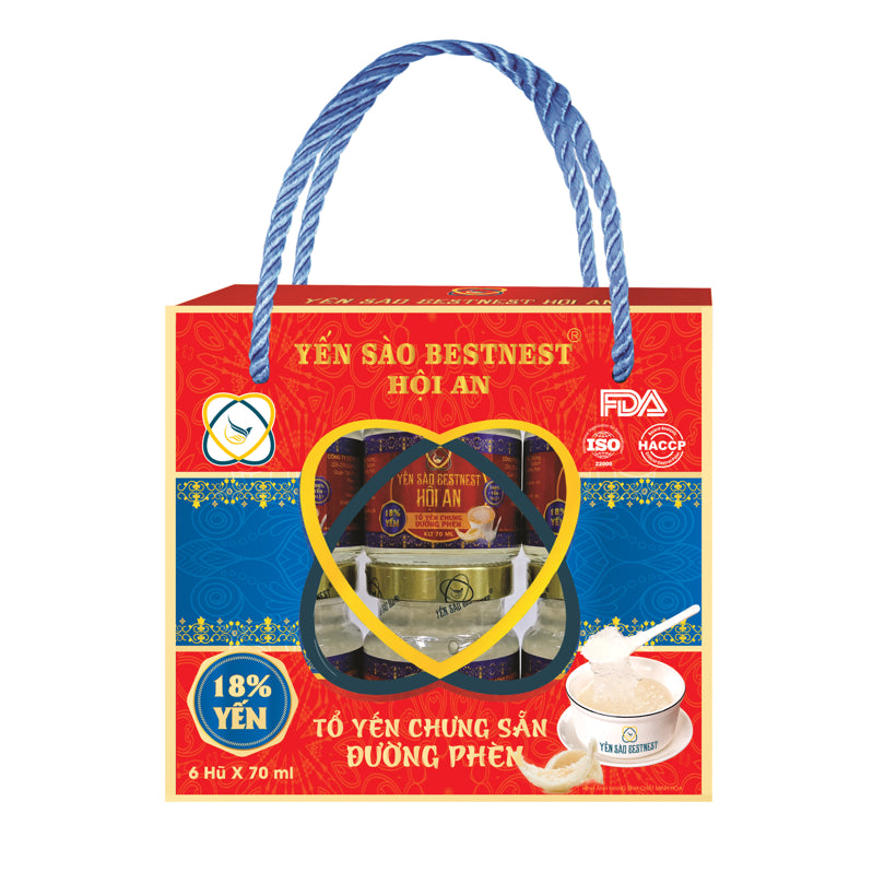 Tổ Yến Chưng Sẵn BESTNEST 18% Đường Phèn là sản phẩm yến chưng truyền thống được ưa chuộng, giữ trọn hương vị nguyên bản thơm ngon, thanh mát từ tổ yến thật 18% kết hợp đường phèn tự nhiên 15% chiết xuất từ cây mía. Mỗi thùng gồm 10 hộp, mỗi hộp 6 hũ thủy tinh dung tích 70ml – tiện lợi sử dụng và biếu tặng.